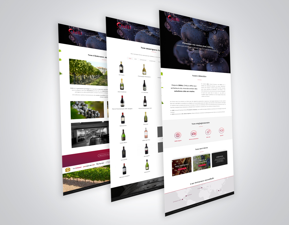 PRINT & DIGITAL Chilli Wine Solutions Spécialiste dans l’export de vins & spiritueux. Missions : Création de sites wordpress, d’étiquettes, de motions, de packagings et d’autres types de supports de communication. Site web Site web Site web Site web Site web Site web Site web Me contacter