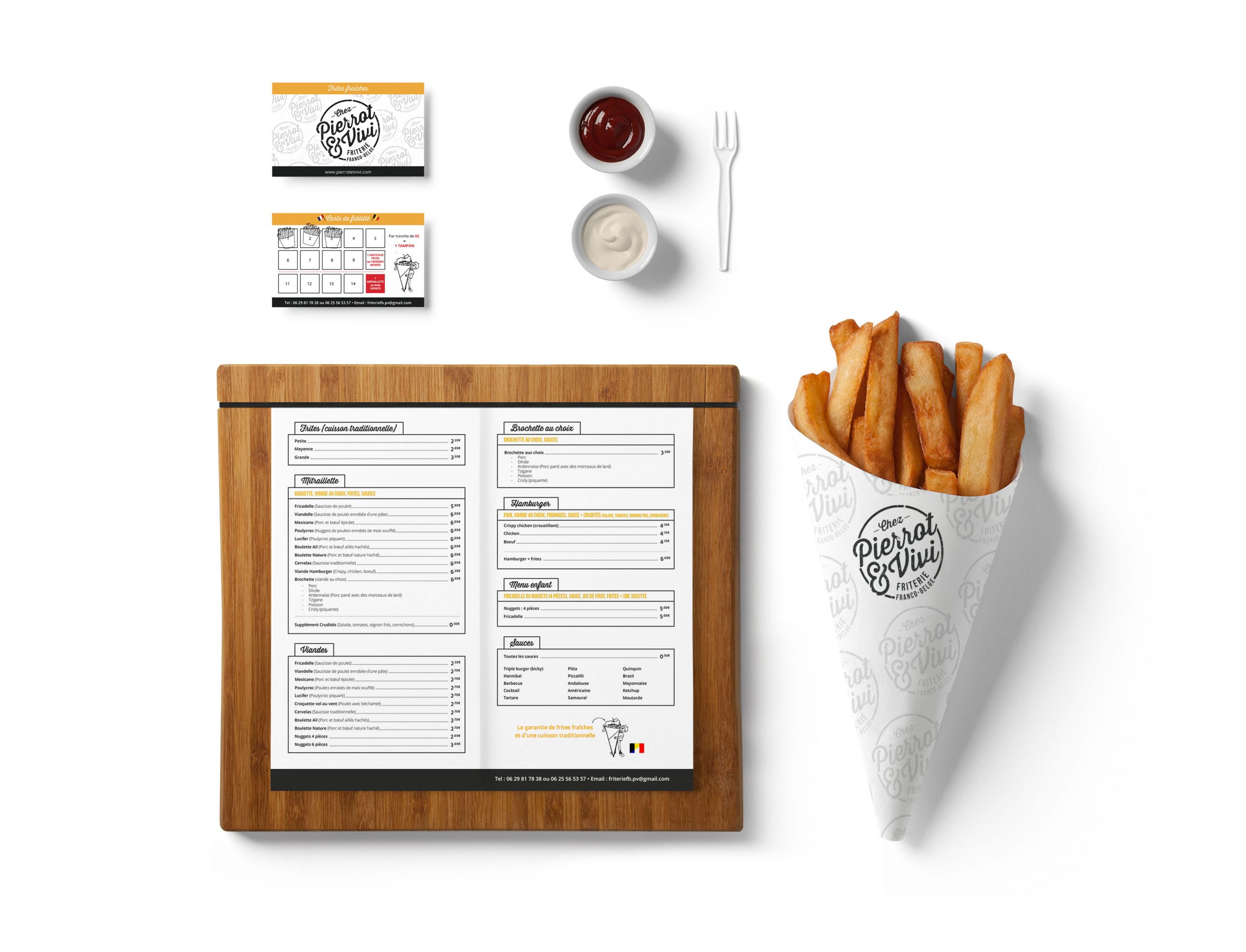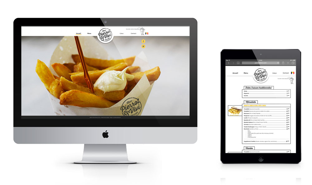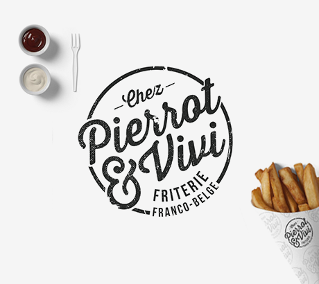 PRINT Chez Pierrot & Vivi Friterie Franco-belge. Missions : Création du logo, du site et de la carte du menu. Me contacter